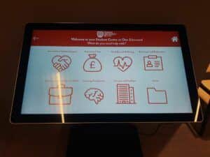 In order to quickly & easily access key info from the Queens website the digital content team designed 3 x bespoke touch screen user interfaces with custom icons. We installed on site and trained the Queens team on how to update and amend the content themselves but as the screens are networked the MAD team can push content to the screens remotely as and when required. The screens can also show content loaded directly from a USB meaning they can quickly and easily be updated for different uses cases such as events or wayfinding when the need arises.